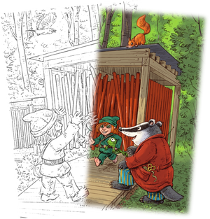 Pumpelpitz auf dem Holzweg zum Ausmalen